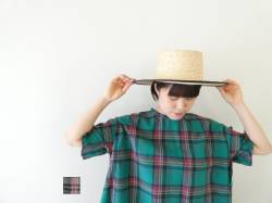 - homspun(ホームスパン) ギンガム&無地パフスリーブブラウス