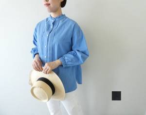- prit(プリット) インディゴシアーデニムスリーブレススタンドカラーシャツ