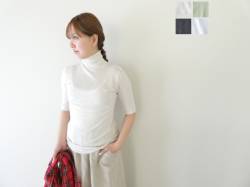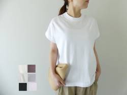 - homspun(ホームスパン) 丸胴テレコ5分袖タートルプルオーバー