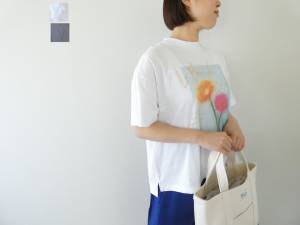 - 【ご予約】prit(プリット) 空紡天竺×リネン箔プリント5分袖フレームTシャツ