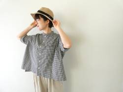 - grin(グリン) モノトーンチェック5分袖ワイドシャツ