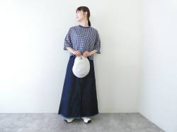 - mizuiro ind(ミズイロインド) ギンガムハーフスリーブバルーンシャツ