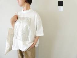 - prit(プリット) 空紡天竺×リネン箔プリント5分袖フレームTシャツ