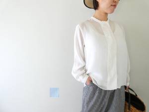- SOUFFLE シアーリネン裾ギャザーブラウス