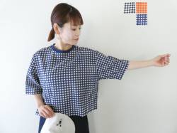 - mizuiro ind(ミズイロインド) ギンガムハーフスリーブバルーンシャツ