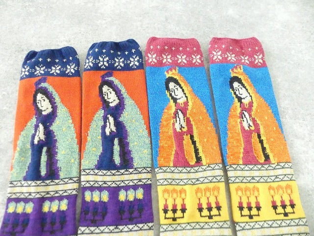 程よく厚みのあるマリア柄のソックス。