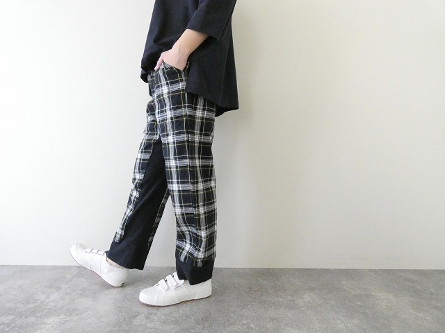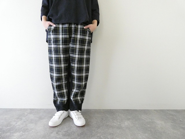 チェック柄と無地を組み合わせた、さりげない個性が光るイージーパンツ。