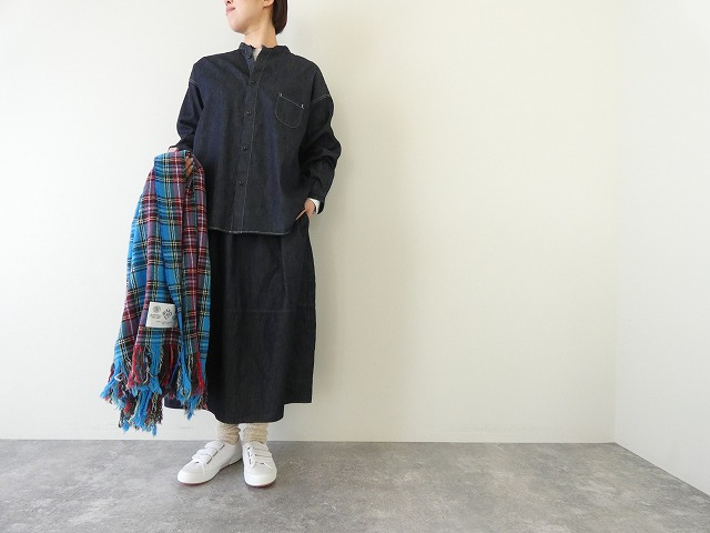 一般的なデニムより少し薄くて軽い6ozデニム素材で、やわらかさがありながらも安心感のある着心地です。