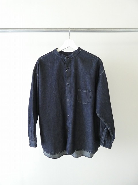 すっきりとした首元が印象的な、prit(プリット)のスタンドカラー長袖シャツ。