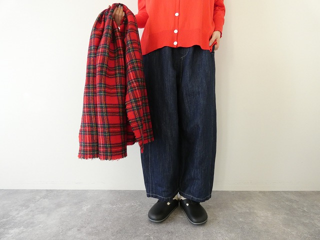 トップスの色を選ばず、白や生成り、赤やチェック柄など、幅広いアイテムと相性よく合わせられます。