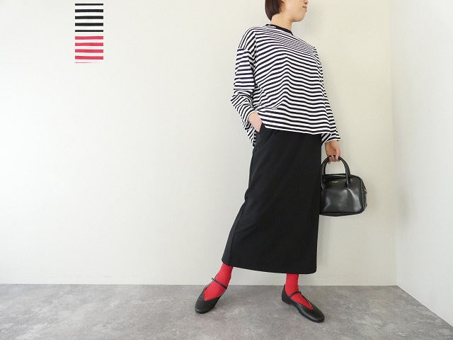 ベーシックなボーダー柄ながら、シンプルになりすぎず、コーディネートの程よいアクセントに。