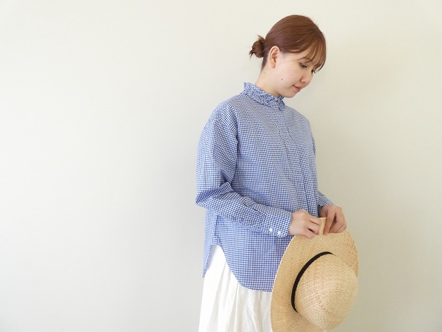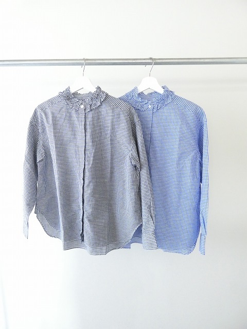 首元にさりげなく華やぎを添える、ギンガムのフリルシャツ。
