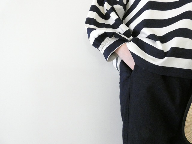 ゆったりとしたテーパードシルエットが特徴で、ウエストはゴムと紐で調整が可能です。