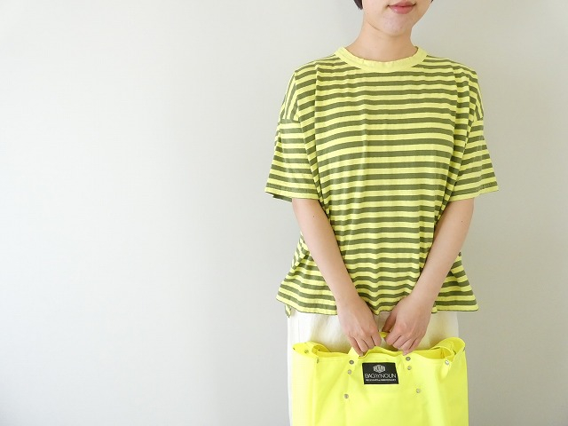 リサイクル天竺カラーボーダー5分袖ワイドTシャツ