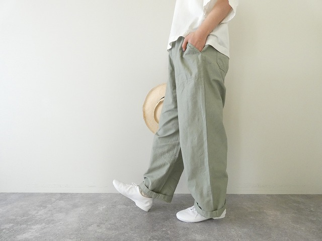 軽さとほどよいハリをあわせ持つ綿麻素材は、はくほどに風合いが増していくのも魅力。