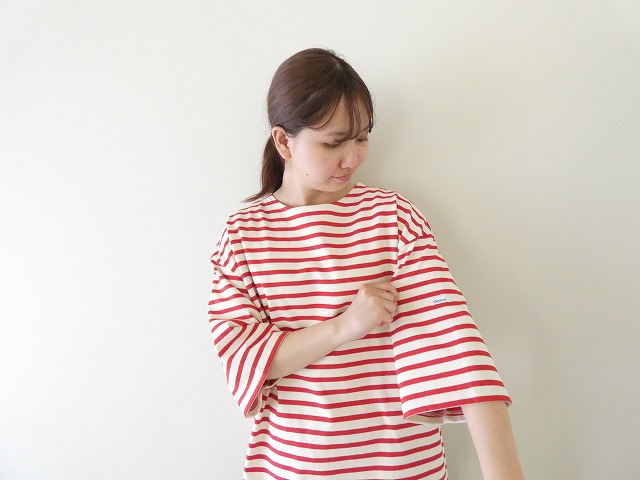 爽やかな赤のボーダーが目を引く、ORCIVAL(オーシバル)の半袖プルオーバーです。
