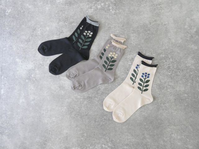 鳥と植物がモチーフの左右で柄が変わるソックスです。
