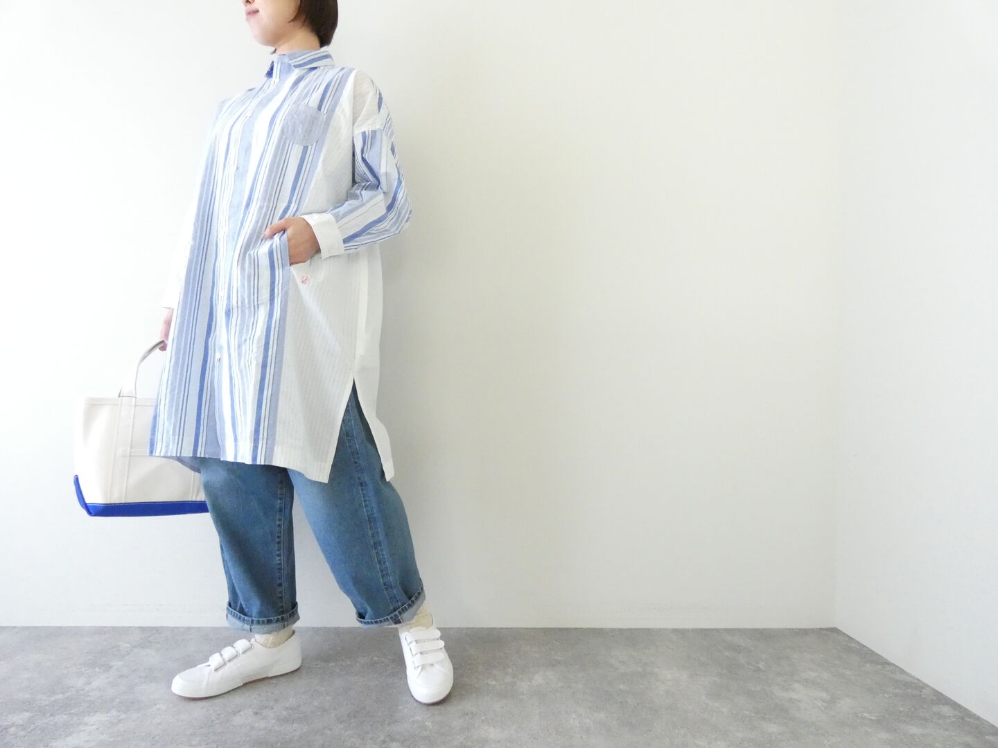 HOME > ファッション > ≪カテゴリ≫ > 【TOPS】 > シャツ・ブラウス > 快晴堂(かいせいどう) 風をはらんでスゥイングする・ブルーブルーストライプ 風をはらむ、ロングシャツ