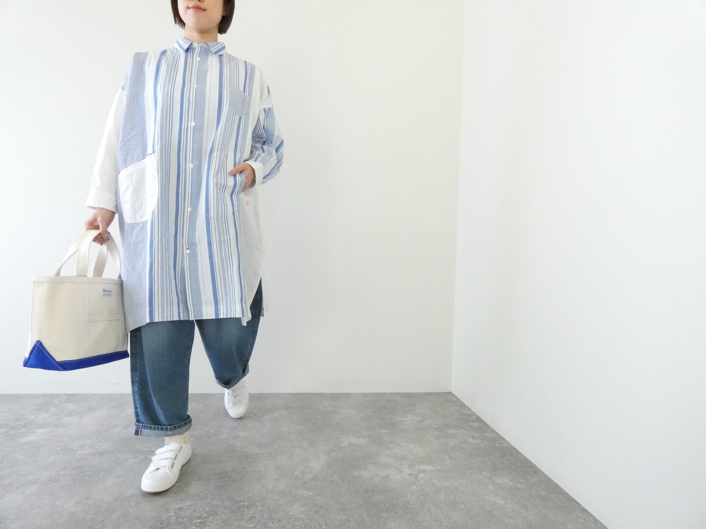 HOME > ファッション > ≪NEW 入荷アイテム≫ > 【2026】 > 4月 > 4月10日 > 快晴堂(かいせいどう) 風をはらんでスゥイングする・ブルーブルーストライプ 風をはらむ、ロングシャツ