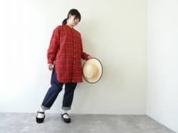 - OUVERT(ウーヴェル) エターミンリファインチェックスタンドカラーロングシャツ